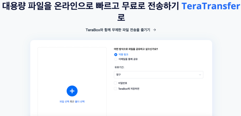 TeraTransfer는 사용자가 사진, 비디오 및 문서와 같은 큰 파일을 익명 링크나 이메일을 통해 무제한으로 공유할 수 있는 또 다른 중요한 제품입니다.