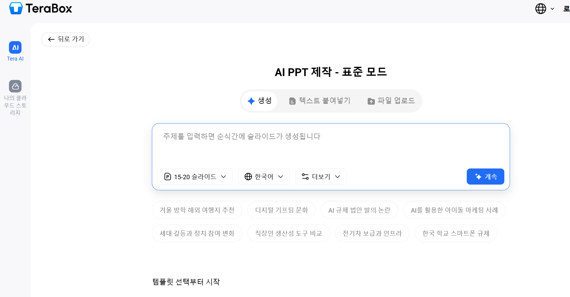 테라박스 AI PPT의 사용자 친화적 인터페이스