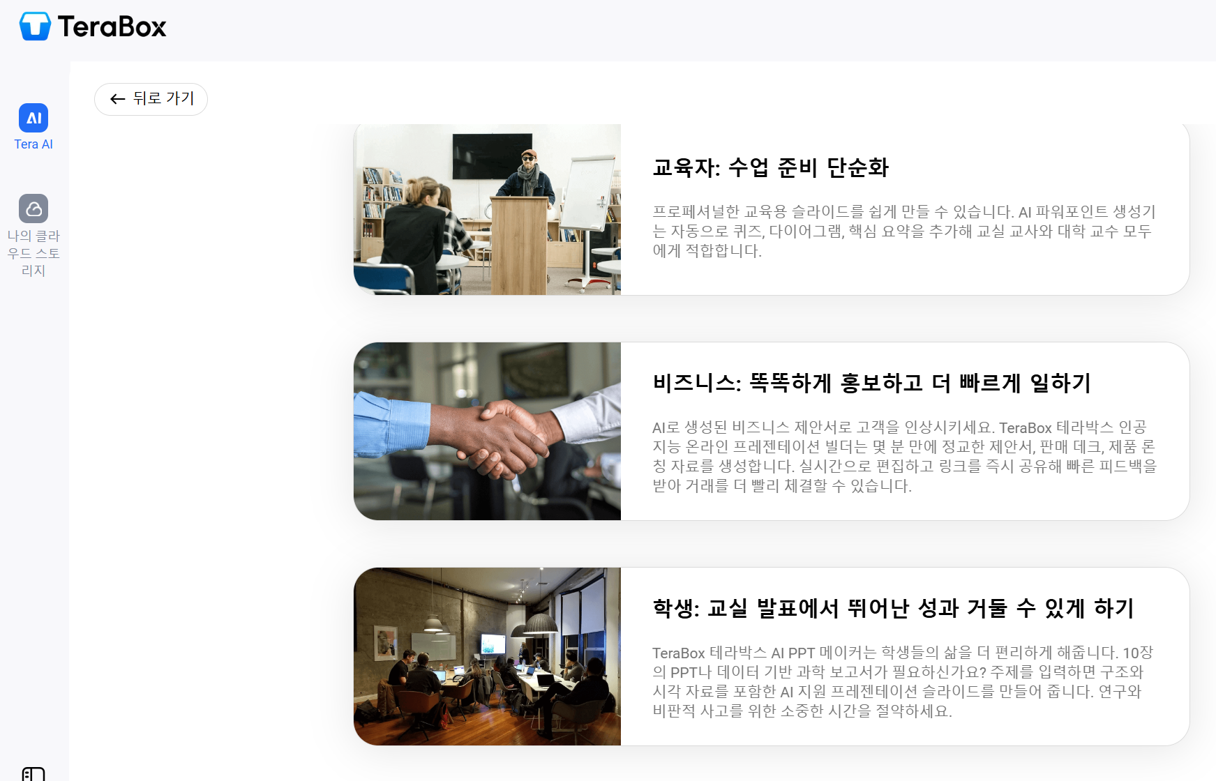 마지막으로, 피피티 만들어주는 AI의 중요성에 대해 강조하고 싶습니다. 테라박스 AI 프레젠테이션 메이커는 사용자가 피피티를 쉽게 생성할 수 있도록 도와주는 중요한 도구입니다. 사용자는 이 도구를 통해 자신의 아이디어를 효과적으로 전달할 수 있습니다.